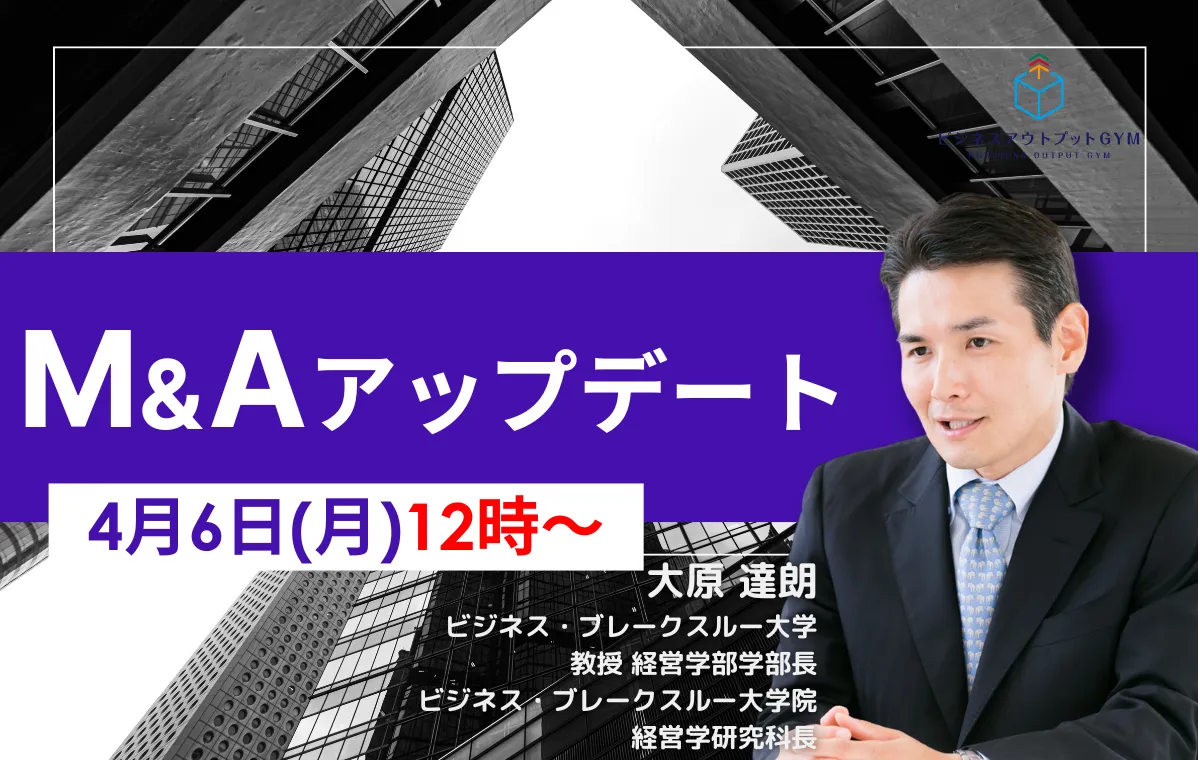 M&Aアップデート インストラクター 大原 達朗 ビジネス・ブレークスルー大学 教授 経営学部学部長 ビジネス・ブレークスルー大学院 経営学研究科長 |