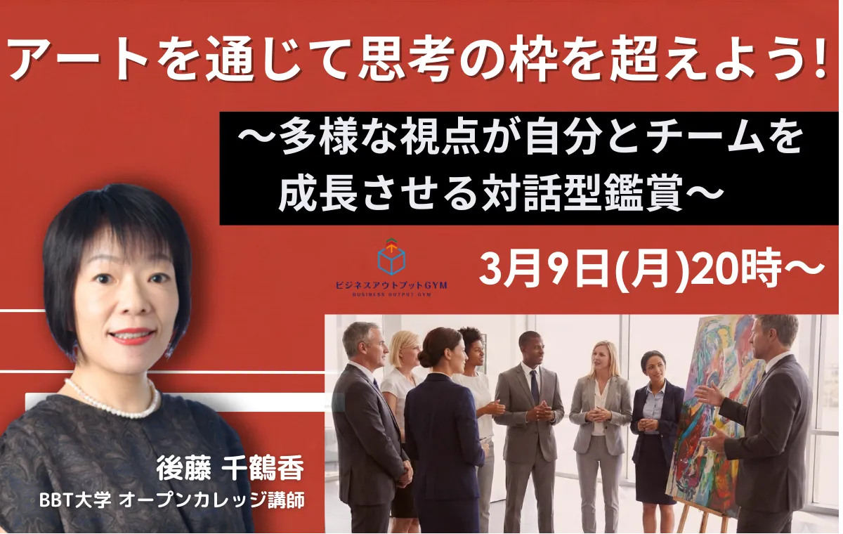 アートを通じて思考の枠を超えよう! ~多様な視点が自分とチームを成長させる対話型鑑賞~ インストラクター 後藤 千鶴香 BBT大学オープンカレッジ講師 |